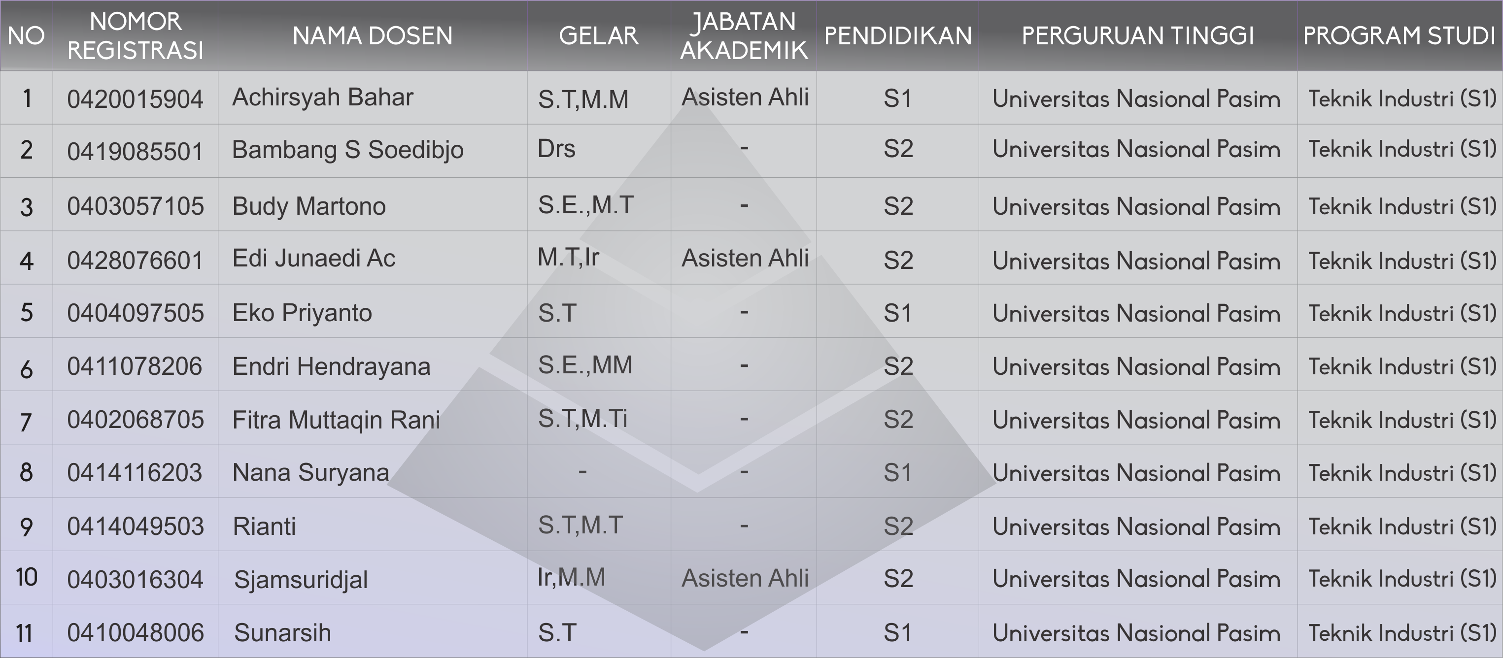 DOSEN (PENDIDIK) PROGRAM STUDI S1 TEKNIK INDUSTRI